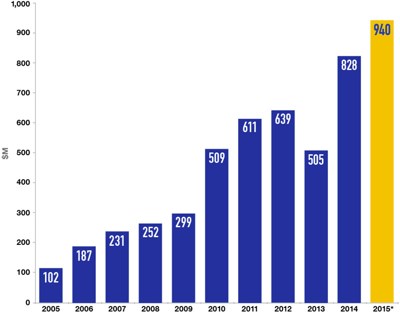 TowerJazz Annual Revenues 2005–2015*