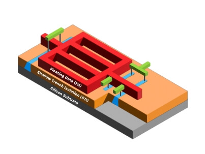 The floating gate, formed as stripes of Polysilicon on STI, is charged by tunnel injection and discharged by UVC photons. Compared with standard FG NVM, the discharge rate is strongly enhanced due to low capacitance and long periphery of the floating gates. Sensitivity practical for UVC disinfection applications is thus achieved. The device can be charged and discharged repeatedly up to 10k times.